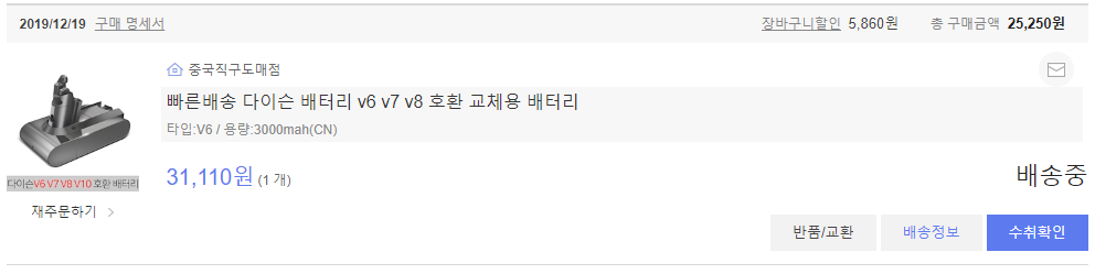 직구 배터리 가격이 더 저렴했기 때문에