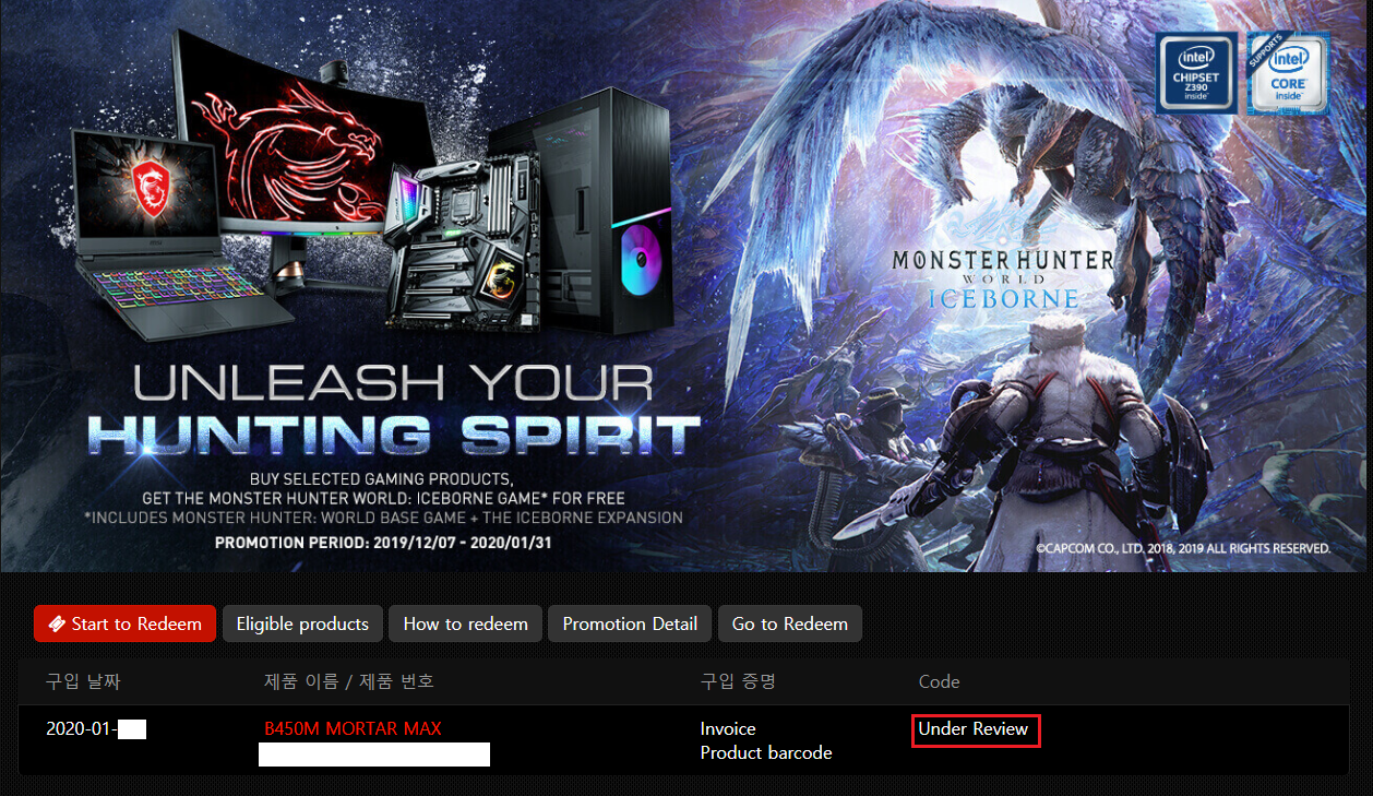 MSI 쪽에서확인하고 리딤 코드 메일로 보내준다고 한다.