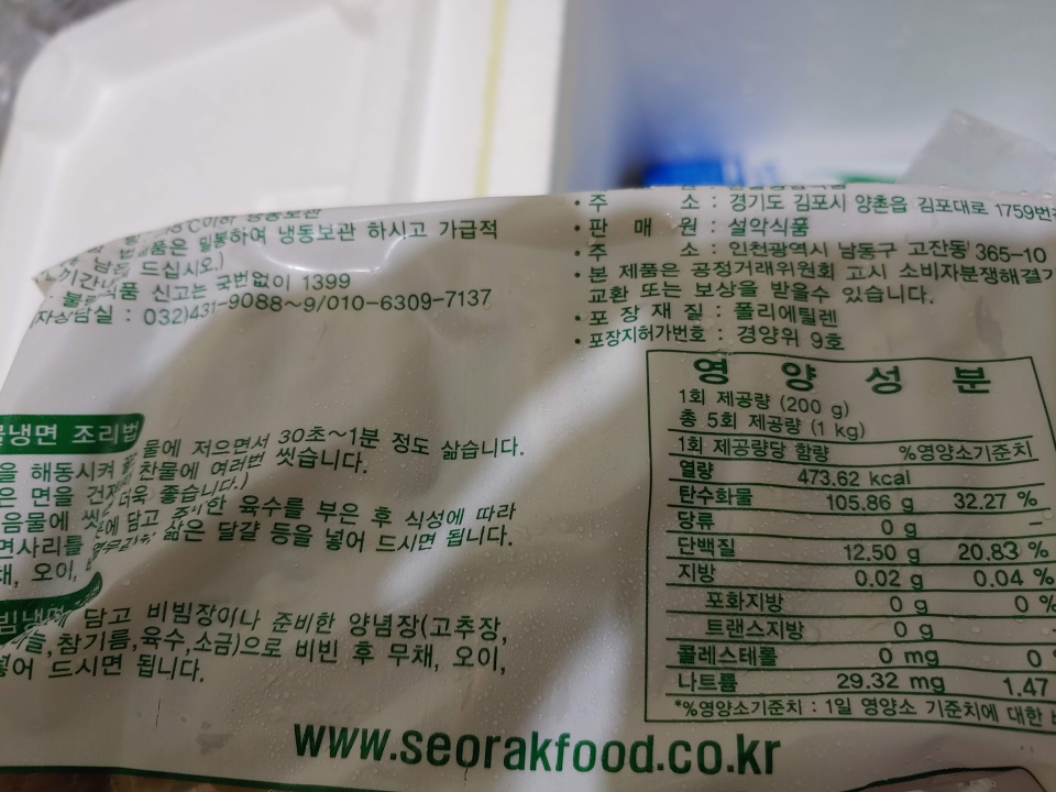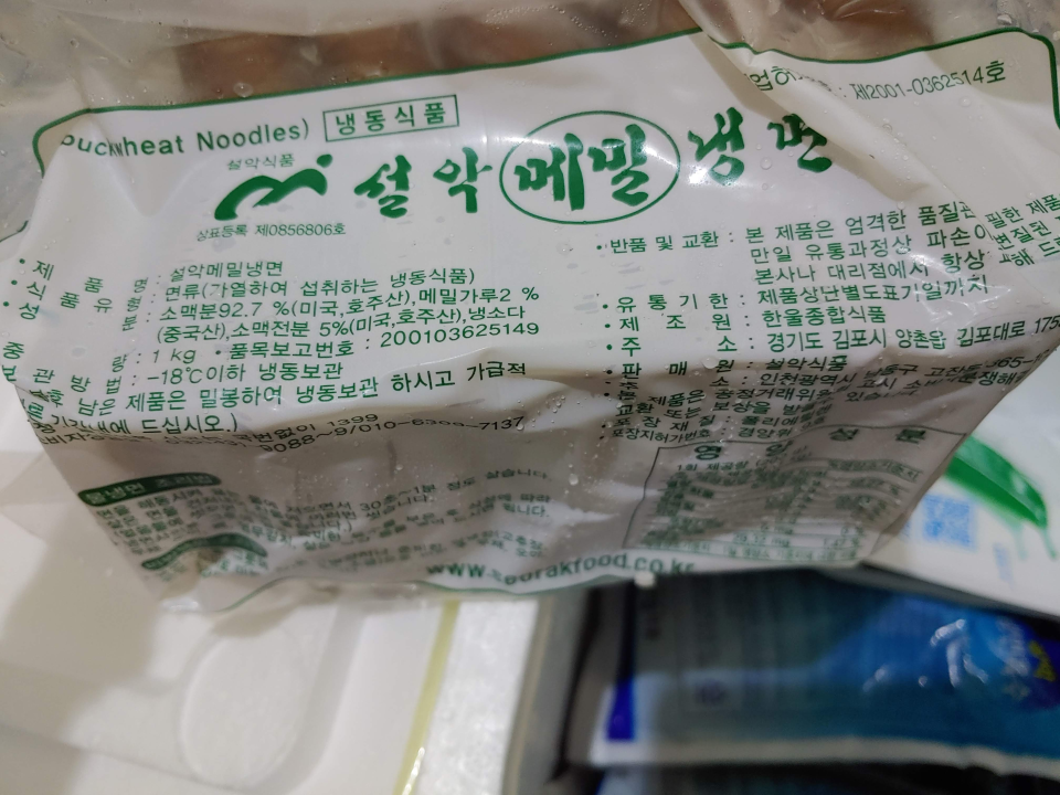위메프에서 5인분 5천원 이었던 설악 메밀 냉면을 구입했다.