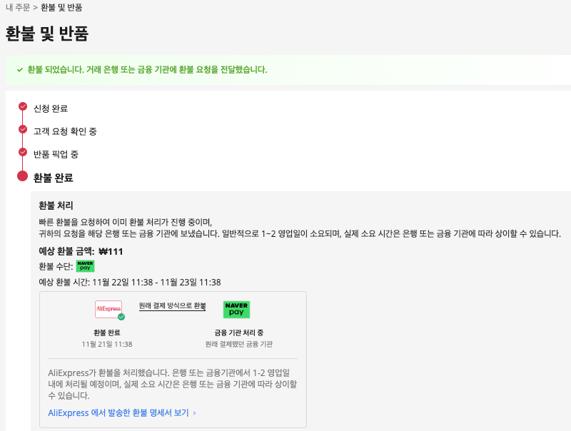 11월 21일 - 환불 완료